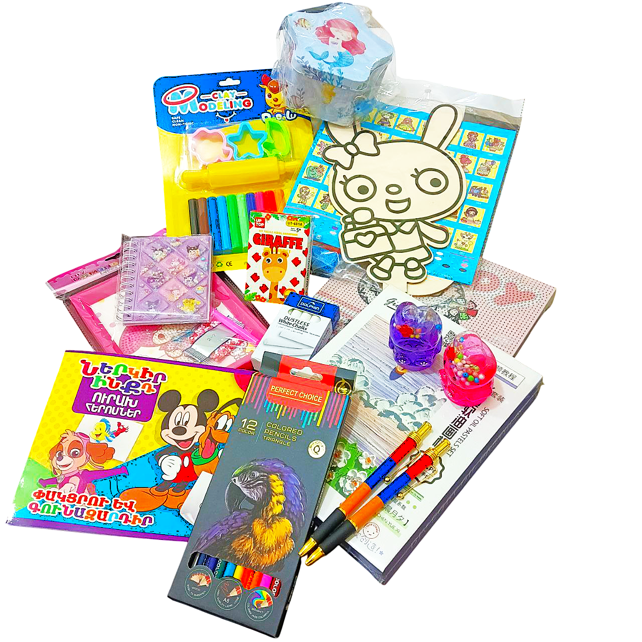 Գունեղ և զվարճալի գրենական պիտույքների և խաղերի հավաքածու Սկարլետի կողմից՝ նախատեսված աղջիկների և տղաների համար։ Սրա մեջ կգտնեք գրիչներ, մատիտներ, ֆլոմաստերներ, լիզուններ, փազլներ և տարբեր խաղեր՝ երեխաների երևակայությունը զարգացնելու և ժամանցն ուրախ անցկացնելու համար։Բոքսը պարունակում է՝